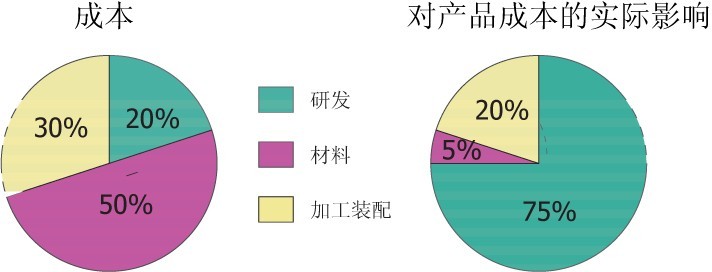 專業(yè)的技能和經(jīng)驗(yàn)為客戶提供最合適的方案;為客戶在第一時(shí)間,在根源上降低成本。設(shè)計(jì)是制造業(yè)的靈魂。雖然設(shè)計(jì)與研發(fā)在整個(gè)成本構(gòu)成中占的比例很小,但對(duì)產(chǎn)品成本影響很大, 如圖1所示