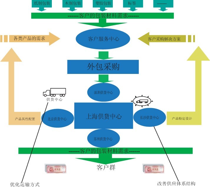 企 業(yè)考慮把包裝材料設(shè)計(jì)與采購業(yè)務(wù)運(yùn)作外包給綜合包裝服務(wù)供應(yīng)商主要有兩大驅(qū)動(dòng)力。 第一,要把資源集中在企業(yè)的核心競爭能力上,以便獲取最大的投資回報(bào)。那些不屬于核心能力的功能應(yīng)被弱化或者外包。而包裝服務(wù)通常不被大多數(shù)的制造企業(yè)和分銷企業(yè)視為他們的核心能力。第二,事實(shí)證明,企業(yè)單靠自己的力量降低包裝材料費(fèi)用存在很大的困難。主要是由于技術(shù)和管理方便能力不足。而我們公司的綜合 包裝服務(wù)供應(yīng)體系就能滿足以上兩個(gè)方面。
